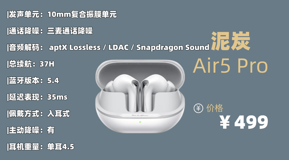 综合趋势主流品牌品牌5:泥 炭A ir5 Pro蓝牙耳机
