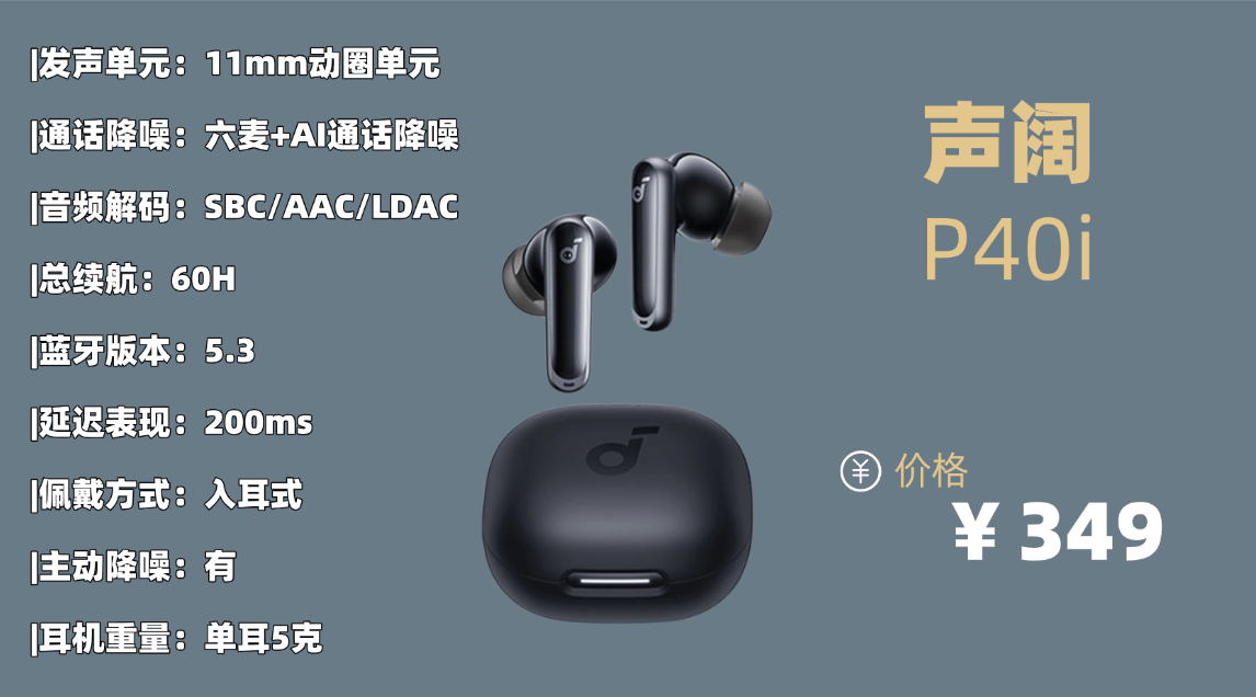 综合趋势主流品牌品牌9:声 阔P 40i蓝牙耳机