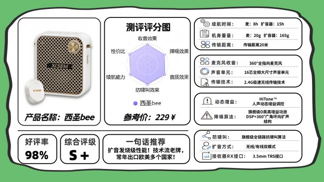 二、值得买的小蜜蜂扩音器推荐安利品牌1:西圣bee领夹扩音器推荐指数:★★★★★推荐语:扩音器里的硬核王者,性能天花板级存在!