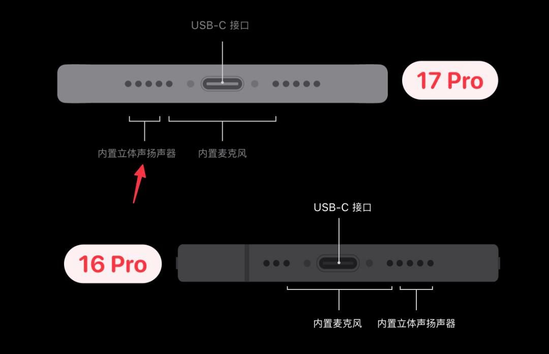 不过对此网友推测,可能是iPhone17pro底部扬声器位置调整有关系,因为对往年的pro版本扬声器位于充电口的右侧,而今年的iPhone17pro系列被移至左侧。