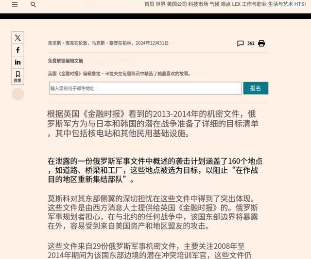 海峡网(2025-01-03)——《曝俄若与北约开战将首先进攻日韩》的报道