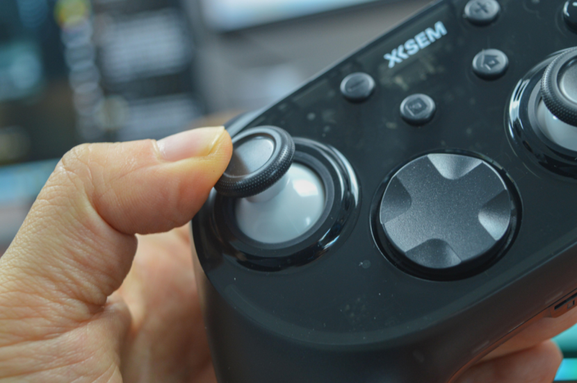 摇杆的阻尼适中,搓动摆弄比较顺滑,摇杆触面微微下凹并且边缘左右防滑设计,跟拇指的摩擦感更好,操作起来更省力不易滑落,实际体验相当有跟手感。十字按键为内凹设计,操作起来不易误触,确认感强。