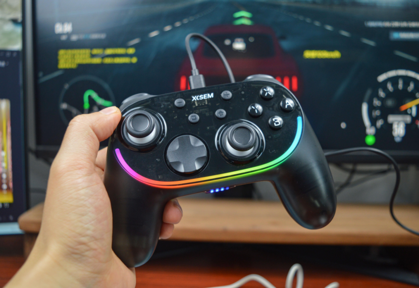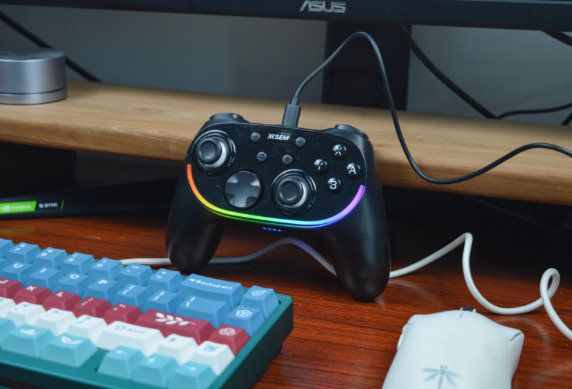 此外正面RGB氛围灯带也颇为吸睛,并且支持遥感互动、ABXY互动,游戏的交互感更好,并且支持多种RGB灯效切换。