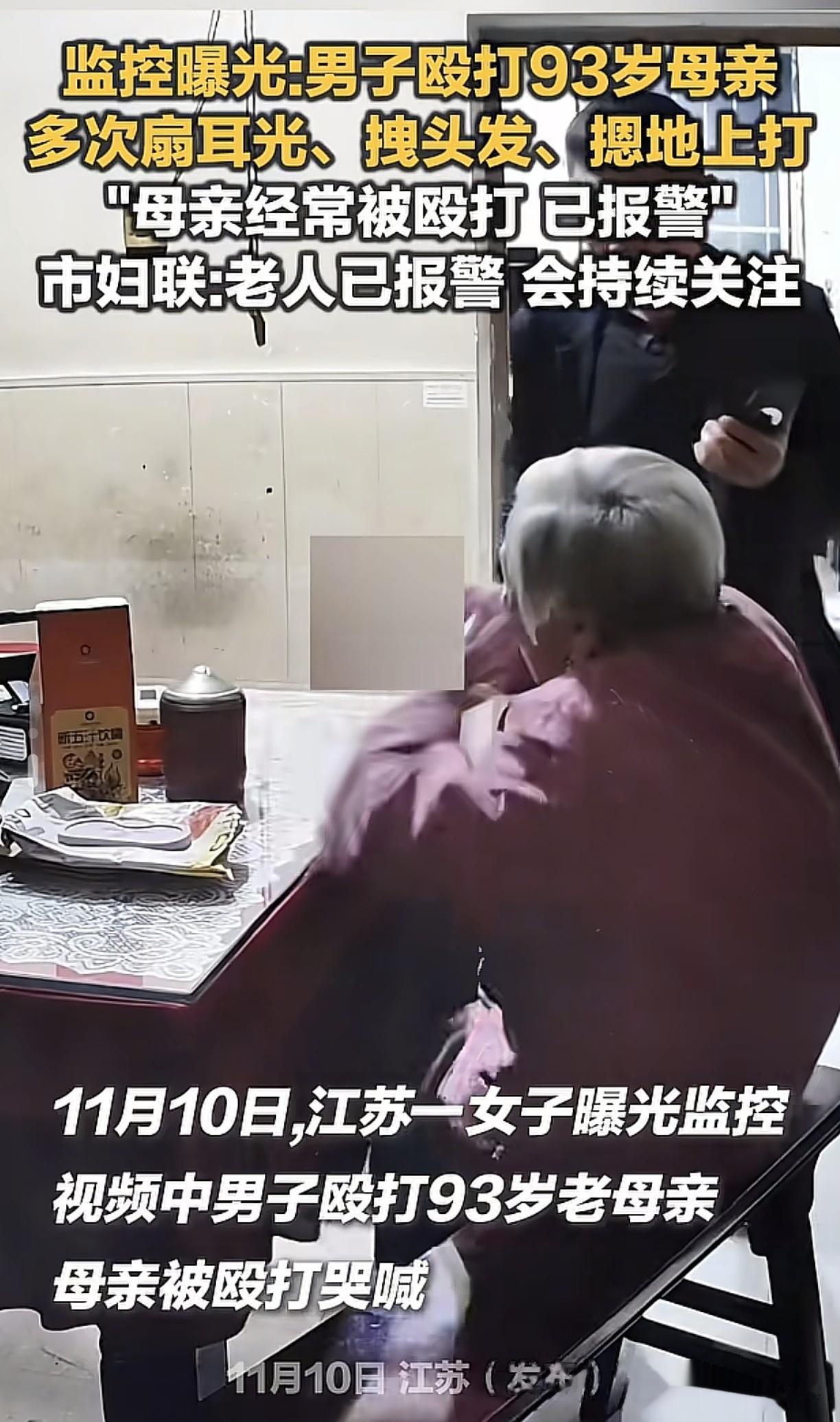 简单回顾事件经过!11月10日,江苏一女子曝光“93岁母亲被儿子暴打”的监控视频,并且表示母亲经常被殴打,引发网友关注!