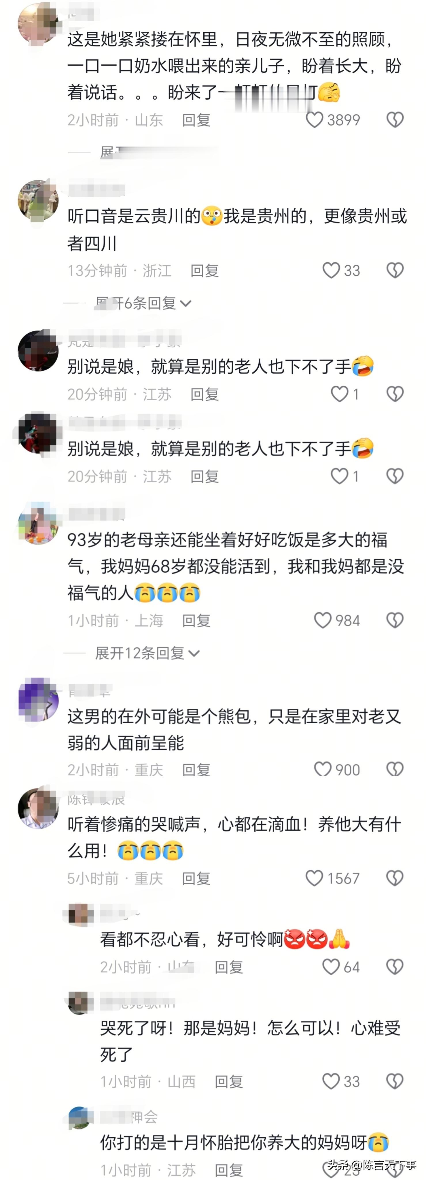 网友热议!毫无意外,没有一个网友是同情男子的,都不说是自己亲娘,就算是别的老人,面对93岁的高龄也下不了手吧!