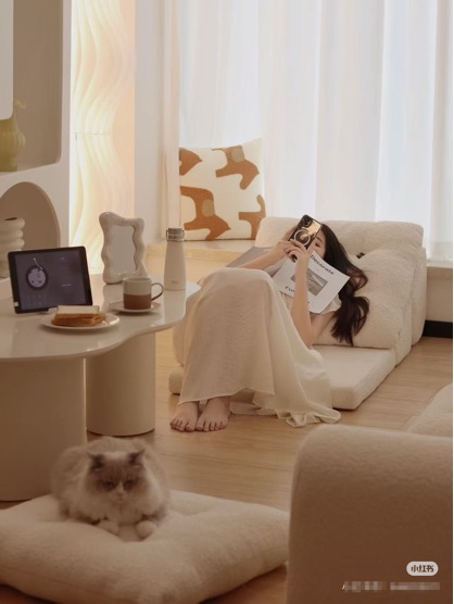 伴着暖阳,慵懒的身体从包裹感强烈的床上N件套中爬起,随性的懒腰中不忘双手拖拽袖口。色系均衡的家装,如商务餐厅摆盘一般的陈设布置,手磨咖啡端手是常态,望着窗外发呆时,傲娇的猫神还能恰如其分的跑来蹭腿。