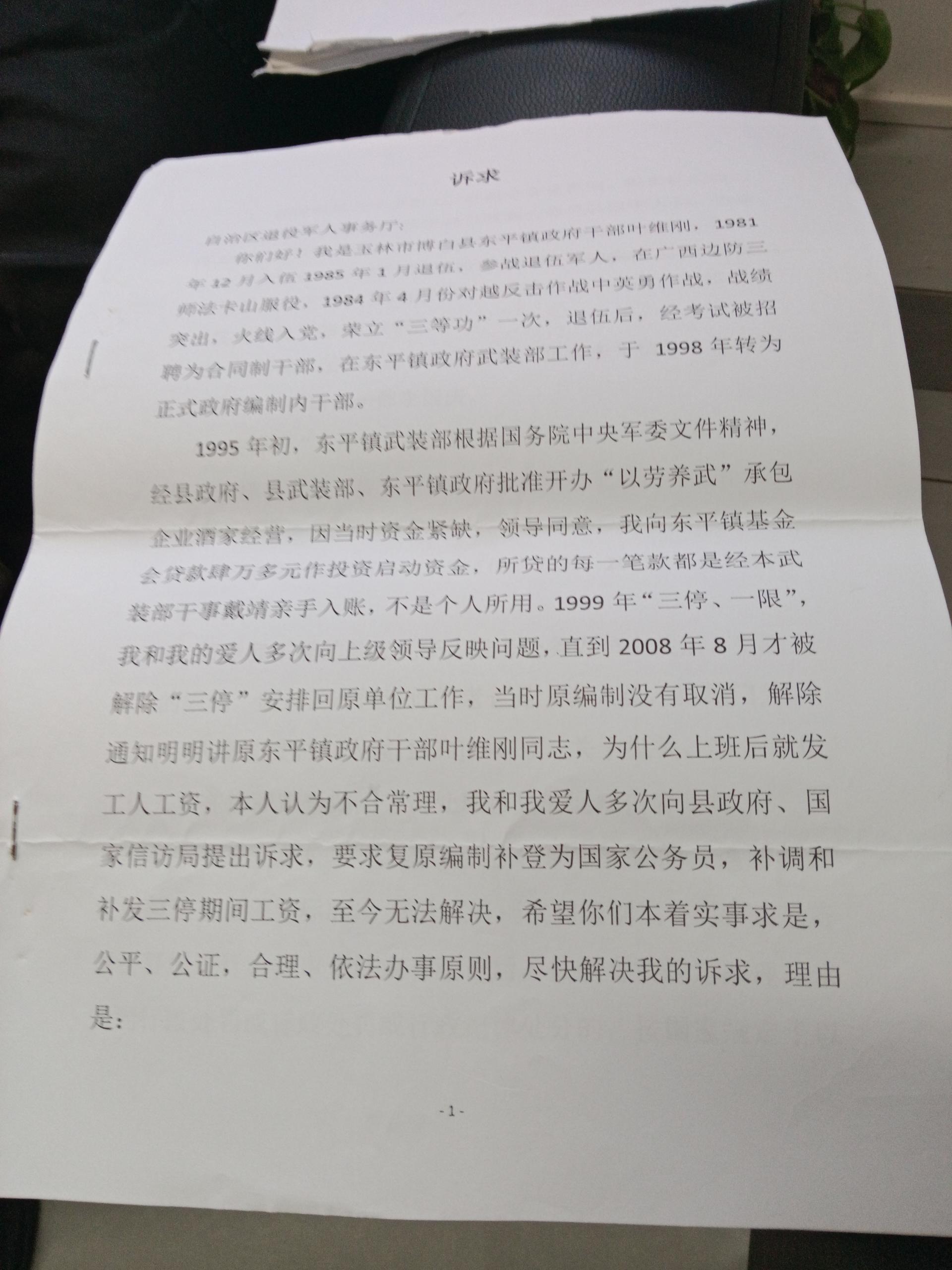 近日,广西壮族自治区博白县东平镇政府干部叶维刚反映的系列权益纠纷事件引发关注。这位曾参与对越反击作战并荣立三等功的老兵,因早年单位“以劳养武”项目产生的借款问题被实施“三停一限”,即便后续官方核实借款为“私借公用”并解除相关限制,但其公务员编制待遇、停职期间薪资补发等诉求长期未获解决。更令人关注的是,他2023年赴京上访途中,在南宁东站遭遇地方工作人员拉扯,后因身体不适就医,相关情况已向铁路公安报案并获受理。