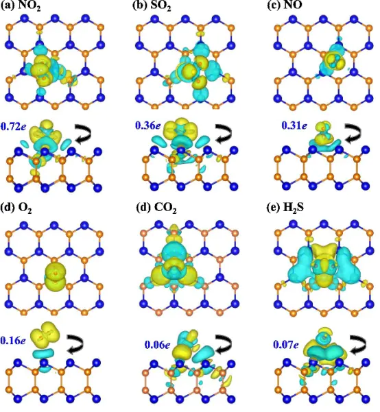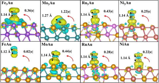 电子聚集区域表现为负电荷富集、流失区域表现为正电荷缺失Bader电荷则可进行定量分析,基于电荷拓扑学原理,通过划分原子的电荷布居范围,可,实现电荷转移量的定量表征。