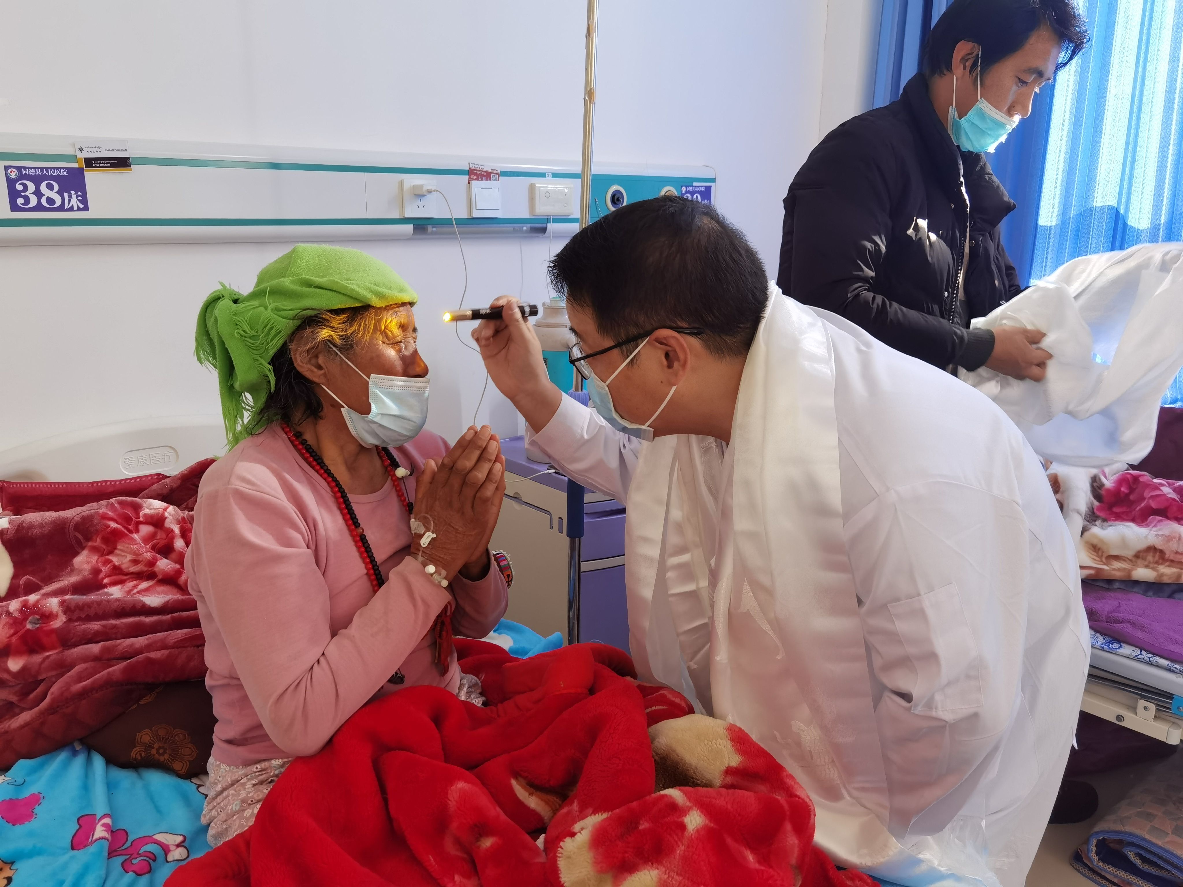 △图为陈耀华正进行术后检查,老人诚挚地合十感谢。