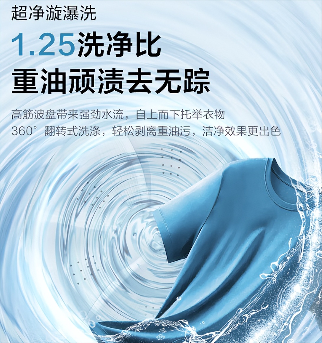 小天鹅波轮洗衣机采用直驱变频技术,实现高效洗涤,衣物清洁力出色。超净洗与高筋波盘结合,洗净比达到 1.25,能轻松去除各种顽固污渍,衣物亮丽如新,非常适合家庭日常使用。10公斤大容量一次可洗多件衣物,包括床单、被罩等大件也能轻松应对。
