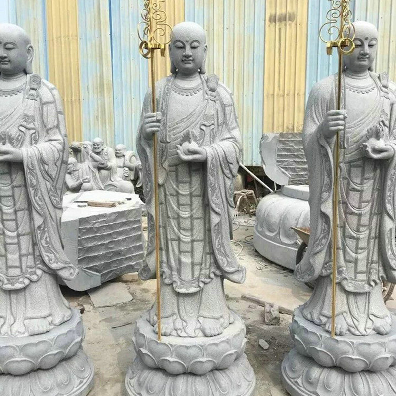 此外,石雕地藏菩萨的光头比丘相,也象征“断除烦恼、脱离世俗”,僧人剃发是佛教“出家”的标志,代表舍弃世俗欲望,以清净身心修行。地藏菩萨以光头形象出现,体现其“以出家人的清净心,远离烦恼干扰,专注救度众生”的决心。