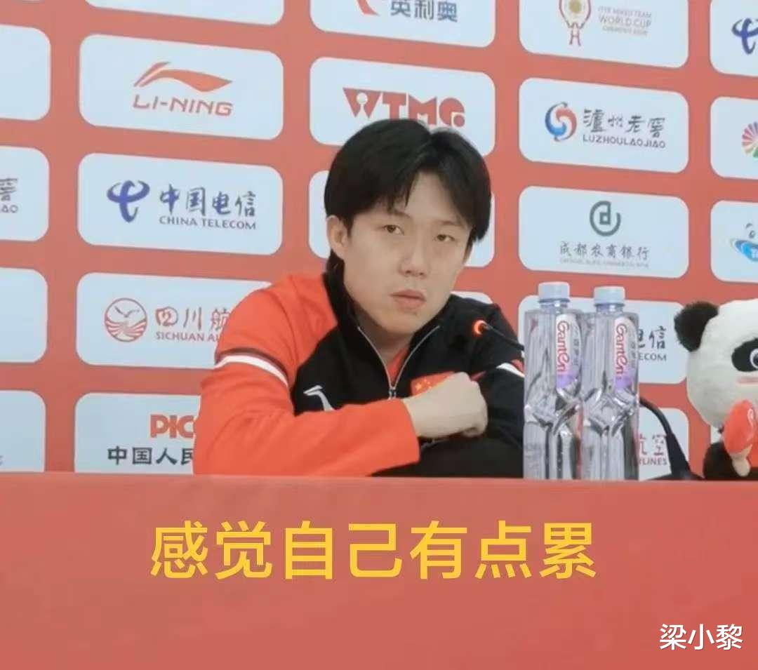中国对阵法国赛后的发布会上,王楚钦说:“我感觉自己有点累。”