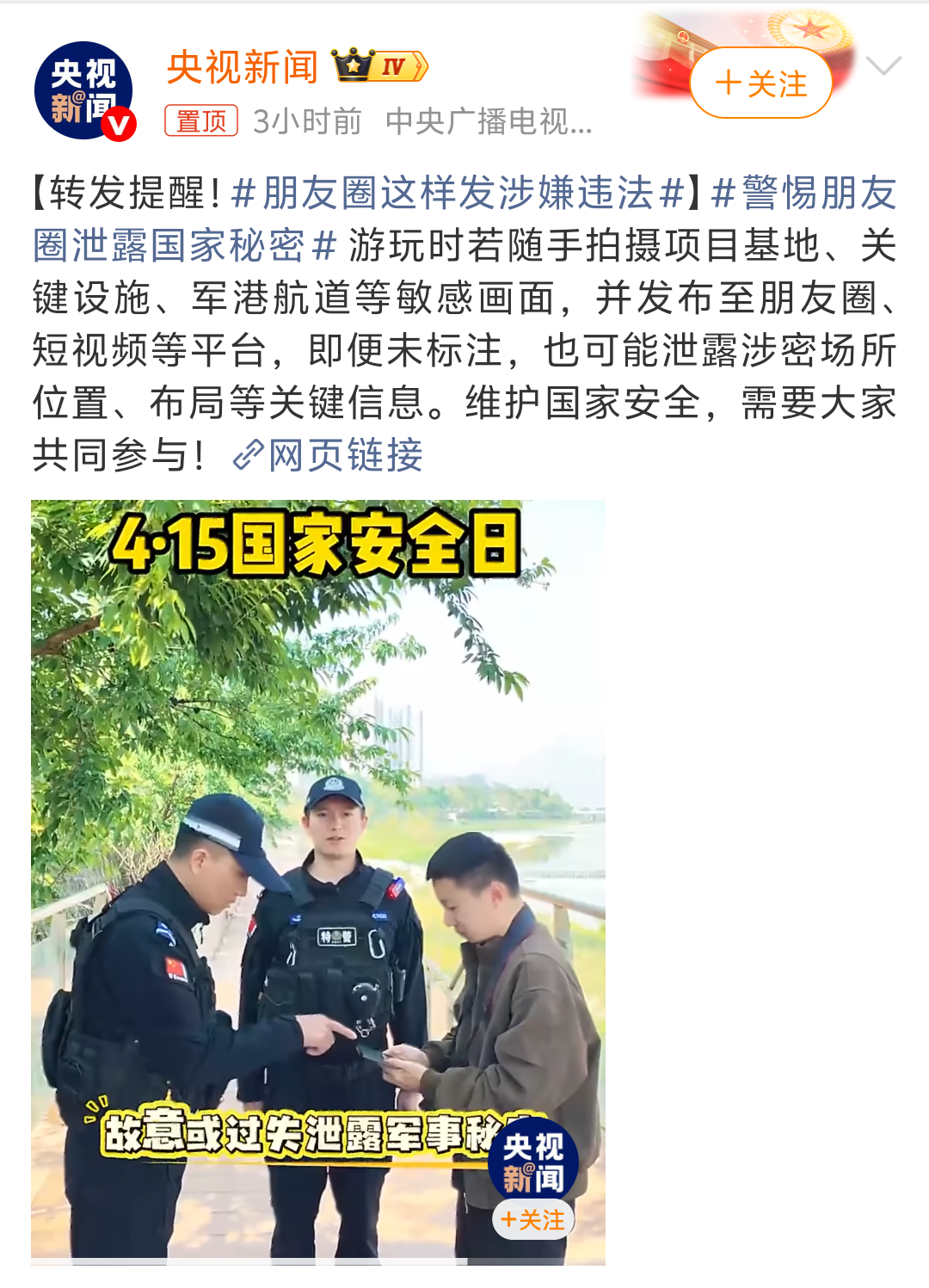 在军事管理区、敏感科研单位附近打卡,或将军舰、军车发上网。这已涉嫌泄露国家秘密,绝非小事。