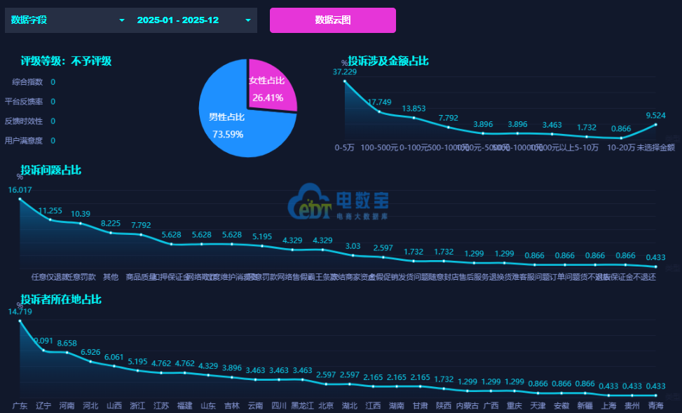 据网经社旗下电商大数据库“电数宝”监测数据显示,快手电商2025年至今投诉的问题主要包括退款问题、任意仅退款、任意罚款、商品质量、网络欺诈、网络售假、霸王条款、售后服务等。