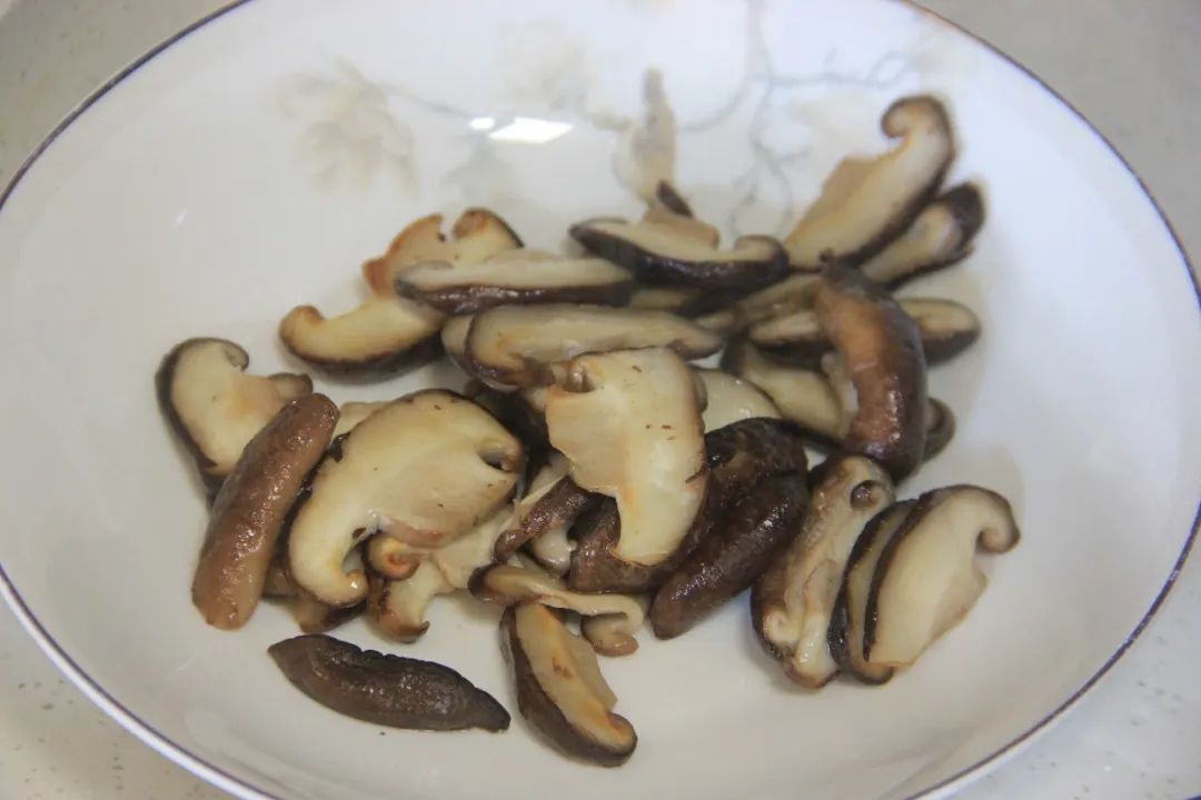 我用的是新鲜香菇。 干香菇提前泡好, 切片即可。