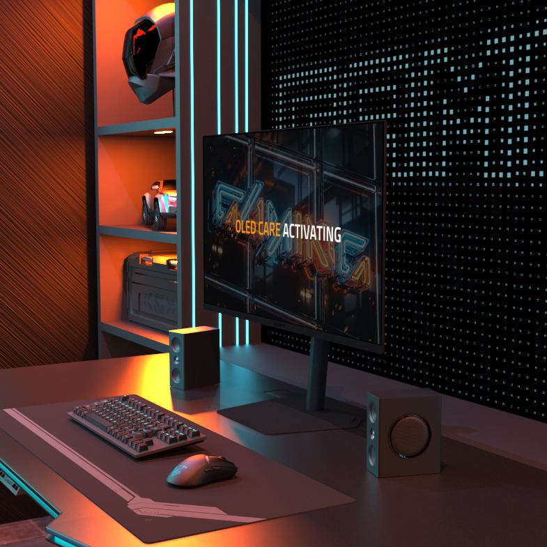 烧屏问题肯定是买QD-OLED的人最关心的。技嘉给的方案是AI OLED Care,包括像素清洁、像素位移、固定图像亮度降低这些功能。关键点是这些功能默认就开着,但用的时候完全感觉不到它们在运行,不需要你隔三差五去手动搞一遍。