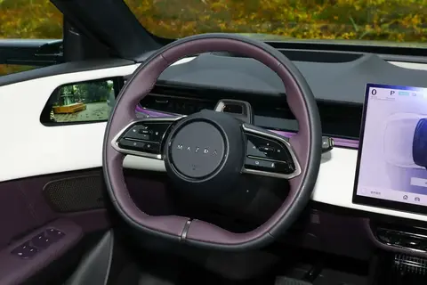 底盘这才是马自达EZ-60的灵魂所在,上周末,我特意没走高速,选了一条翻越太行山的国道,有大量的连续弯道和起伏路面,就想好好试试马自达的“电感人马一体”到底是不是噱头,先说转向,86.5%的高强钢车身带来了极高的车身刚性,方向盘转向几乎没有虚位,车头响应极快,指哪打哪。在山路上,心里想好的走线,车子能丝毫不差地执行,那种“手随心动”的沟通感,瞬间就回来了。其次是底盘,听说这套底盘是中、日、德三国工程师联合调校的,跑起来果然不一样,过弯时,车身侧倾抑制得非常好,四个轮子就像被强力胶粘在地上一样,牢牢抓住地面,给了我极大的信心去攻克每一个弯角,它的后H臂式多连杆独立悬架配合连续可变阻尼减振器,对路面细碎颠簸的过滤很到位,但在过大的坑洼时又保留了一定的路感,韧性十足。真正让我惊喜的是,在连续的S弯中,车辆的横向重心转移非常平顺,车内乘客不会有那种被甩来甩去的不适感,马自达说的“研究中国人坐姿”,真不是空话,座椅的包裹性和支撑性,加上精准的操控,让开长途变成了一种享受,而不是煎熬,这台马自达EZ-60,让我在电动时代,重新找回了驾驶的乐趣。
