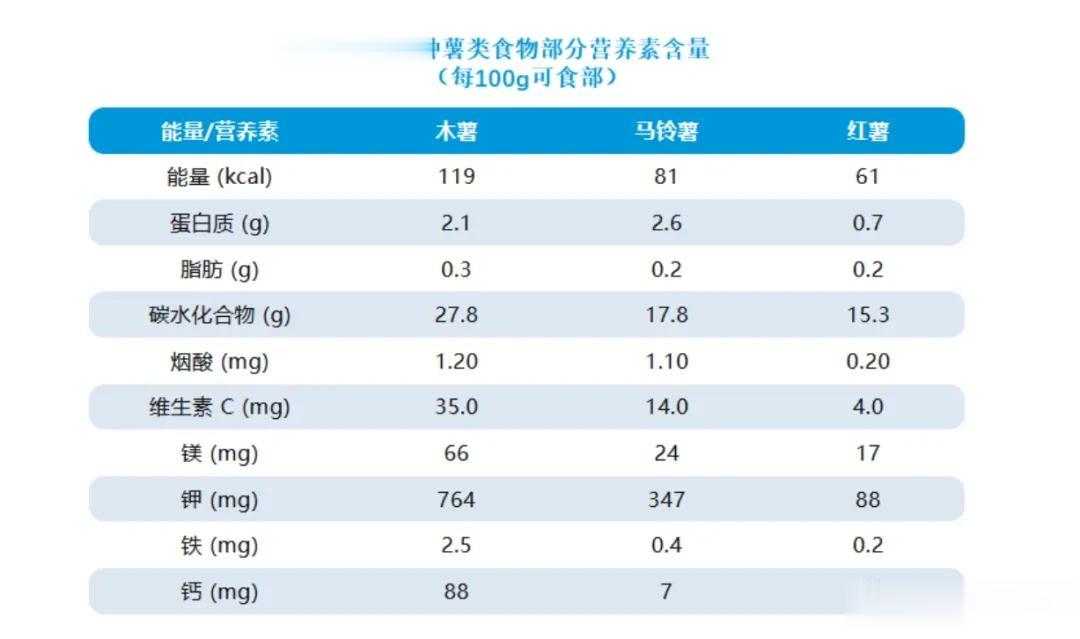 木薯、马铃薯、红薯中含有的主要营养素见表。