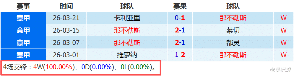 那不勒斯默默地拿下4连胜,当然对手实力比较有限,从维罗纳、都灵,到莱切和卡利亚里,全都在积分榜后十名,但拿分是硬道理,比如米兰就经常在小球队身上丢分。目前,卫冕冠军只落后AC米兰1分,今晚主场若取胜,即可反超,动力显然是不缺的。