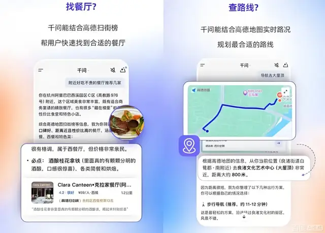 2025年9月,Google提出“Grounding with Maps”战略,试图用地图数据为AI“去幻觉”。三个月后,阿里给出了中国答案:千问与高德深度整合。这不是简单API调用,而是系统级协同——千问理解用户意图,高德提供实时POI(兴趣点)、路况、商家营业状态等动态数据,最终生成可执行的服务卡片。