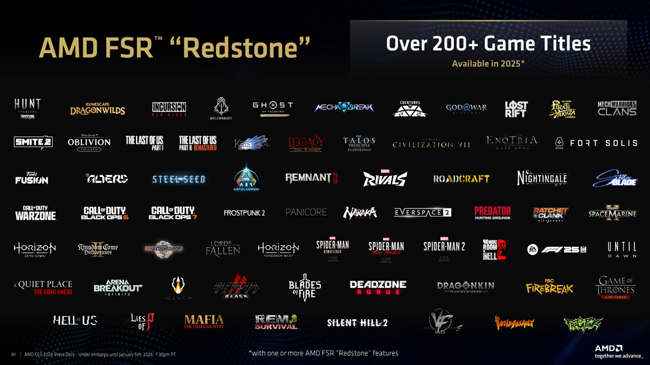 FSR Redstone超分辨率技术:作为对现有FSR 4模型的增强,新的超分模型将利用AI神经渲染技术,能够大大提高画质并降低延迟。