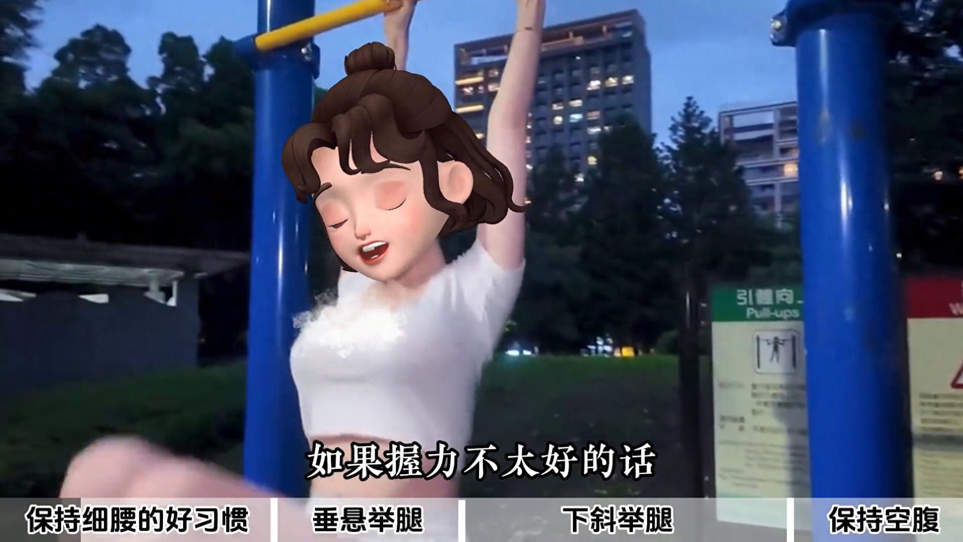 ·如果已经能够轻松的进行悬吊,比如一口气可以吊20秒以上,说明可以开始做悬垂举腿的动作了。像这样子屈腿的卷腹可以把骨盆抬上去靠近胸腔,相比较于直腿的动作会容易很多。直腿的一般很多女生做不了,但是屈腿的可以做的就像这样子比较容易。