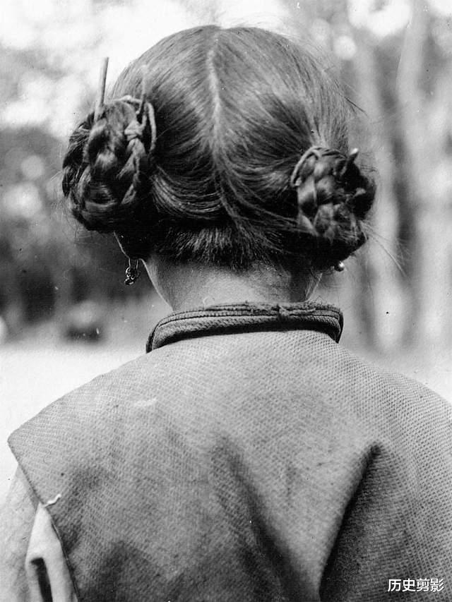 从这位女子的背影,能看到当时的发型审美。双髻盘发,简单的发簪,是那个年代普通女性的日常装扮。