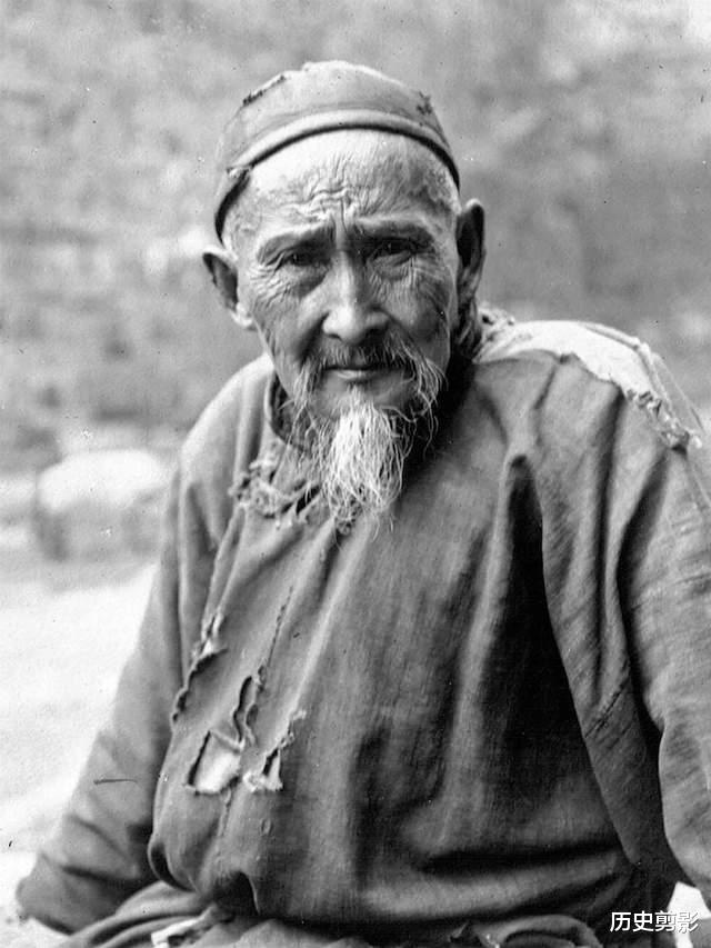 第一张里,是一位饱经风霜的老人。满脸的皱纹,打满补丁的衣服,藏着那个年代底层百姓的一生。