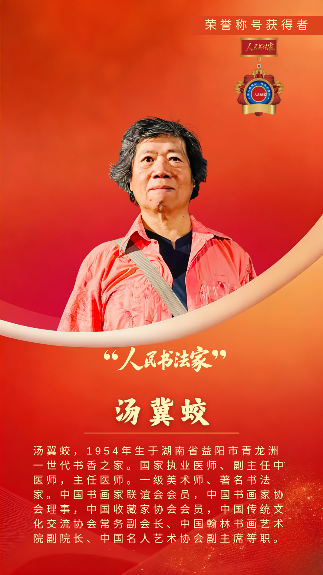 汤冀蛟,这位集副主任中医师、一级美术师等多重身份于一身的艺术家,六十余载在医道与艺道间并行不悖,以对书画艺术的极致执着书写人生华章,以对社会公益的赤诚践行诠释艺术家的责任担当。他的笔墨里,既有传统文化的深厚底蕴,更有心怀家国的滚烫温度。这位1954年生于湖南,1957年迁居武汉的艺术家,身上流淌着湘楚大地的文化血脉,又经长江之水的滋养,既有传统文人的风骨,又有现代知识分子的担当。如今,担任中国书画家联谊会会员、中国书画家协会理事、中国收藏家协会会员、中国传统文化交流协会常务副会长、中国翰林书画艺术院副院长、中国名人艺术协会副主席等职的汤冀蛟,依然保持着每日创作的习惯。在他的工作室里,医书与字帖并置,处方笺与宣纸相邻,仿佛在无声地诉说着一个道理:无论医治身体还是滋养心灵,都需要专注与仁爱。