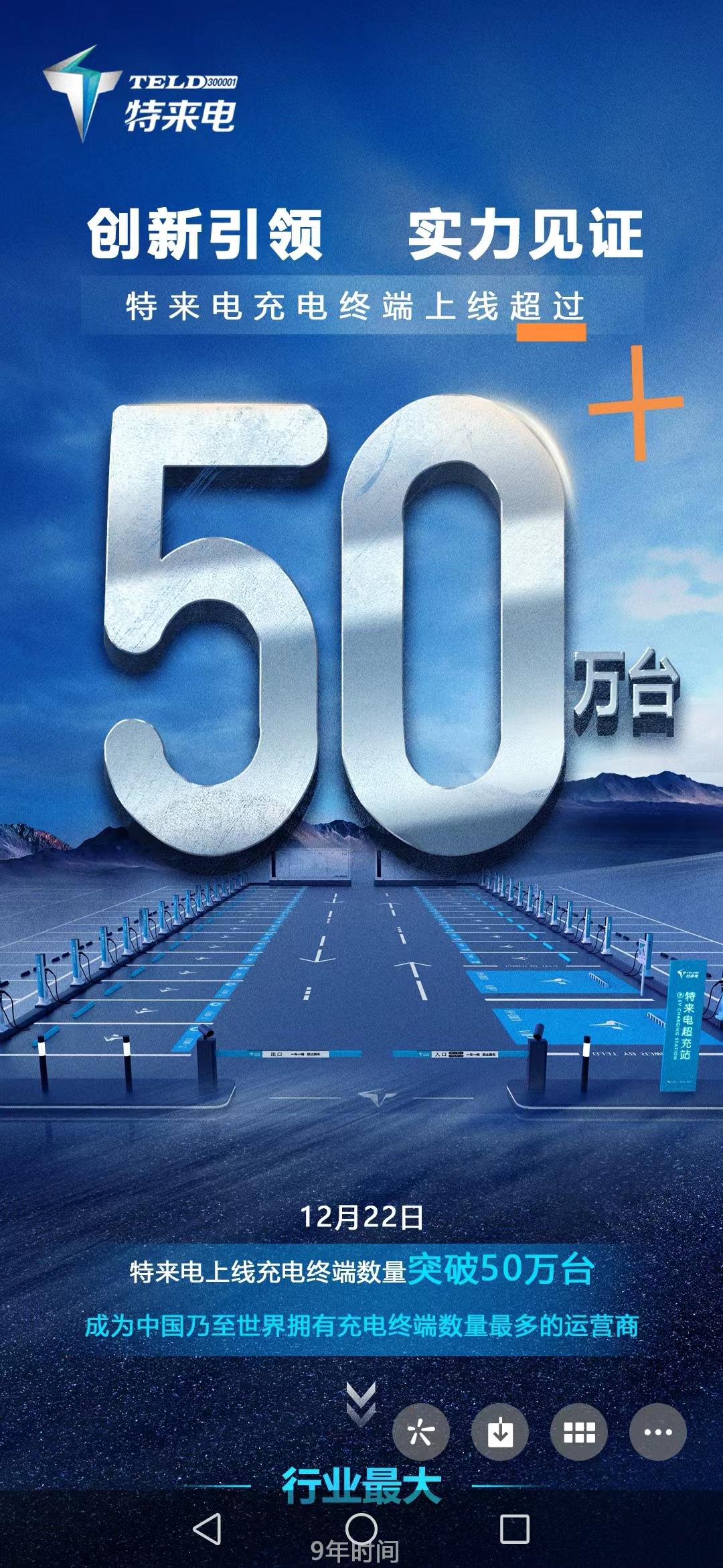 据悉,2023年12月,特来电的充电终端数量已突破50万,累计充电量突破256亿度,服务1600万辆新能源车,实现碳减排2618万吨,节油量达到113亿升。继续保持其行业龙头地位。