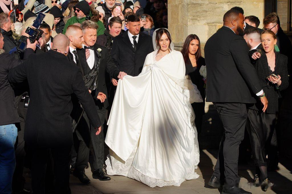 当新娘子霍莉和她的父亲戈登·拉姆齐一起抵达教堂时,她马上被记者们围住了,场面马上有些失控。