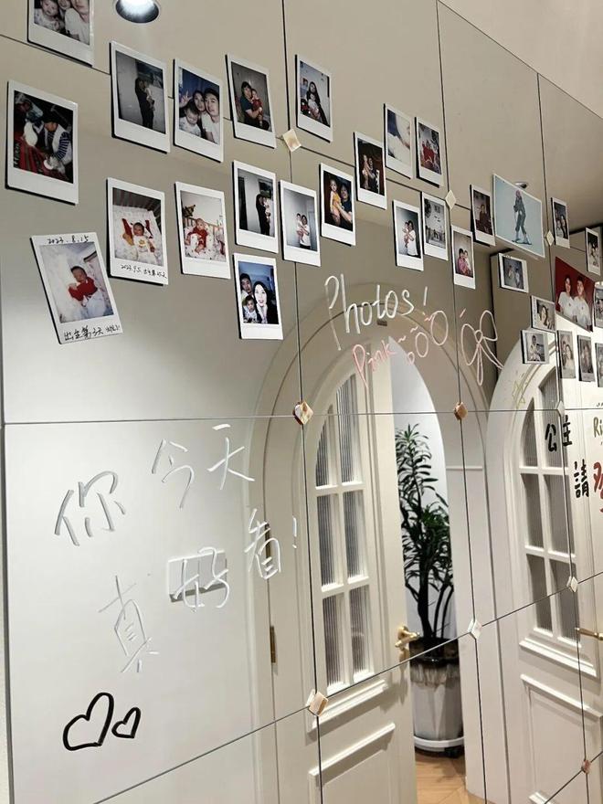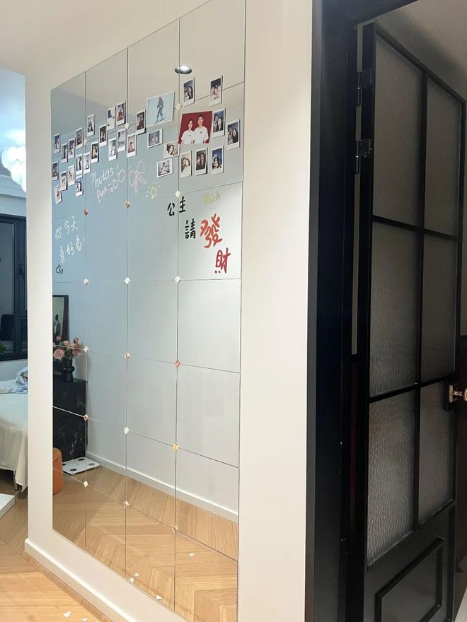 再比如网友@夏夏的家,也在过道做了一面方镜设计,再通过一些马赛克点缀,一面照片留言墙就有了。