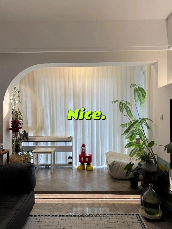 另外,在阳台门洞墙垛只有一边可以砸掉的情况下,这种半弧形门洞设计,也在不完美中,找到了更自然的平衡方式。