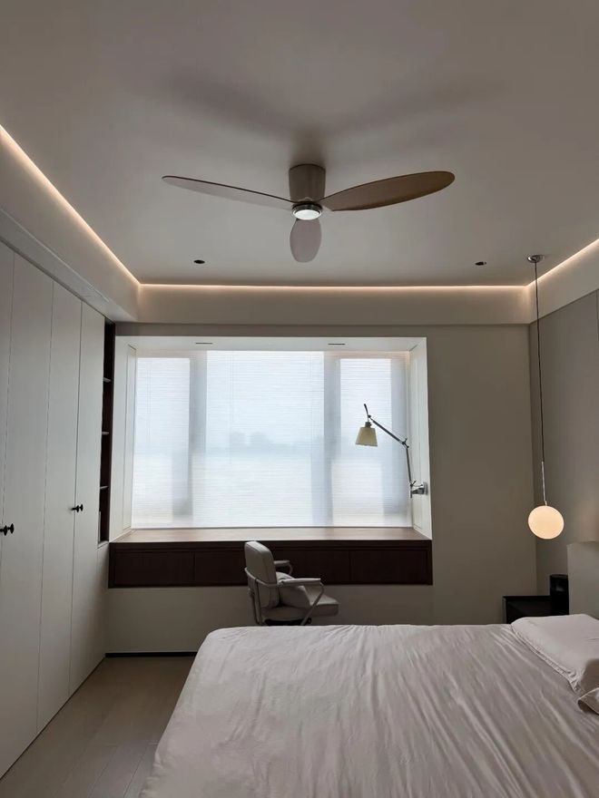 另外,我还给卧室也安装了吊扇,不仅省下了大量的电费,秋冬季的时候还可以打开反转功能,提升室内空气流通性。