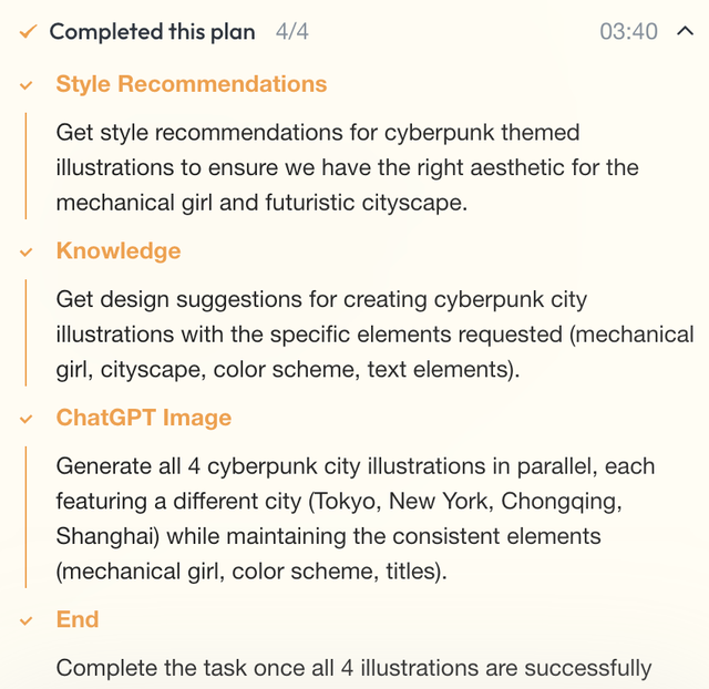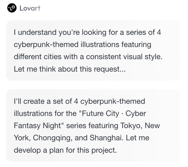 Lovart 首先是尝试思考、理解需求,很快就进入下一阶段:制定规划。