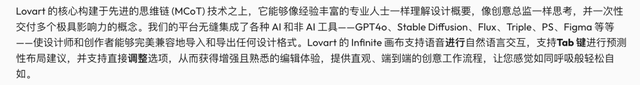 按照官方的介绍,Lovart 是全球首个设计 Agent,可以让人类和 AI 在同一张画布上写作,迅速将提示词转化为令人惊叹的视觉效果。