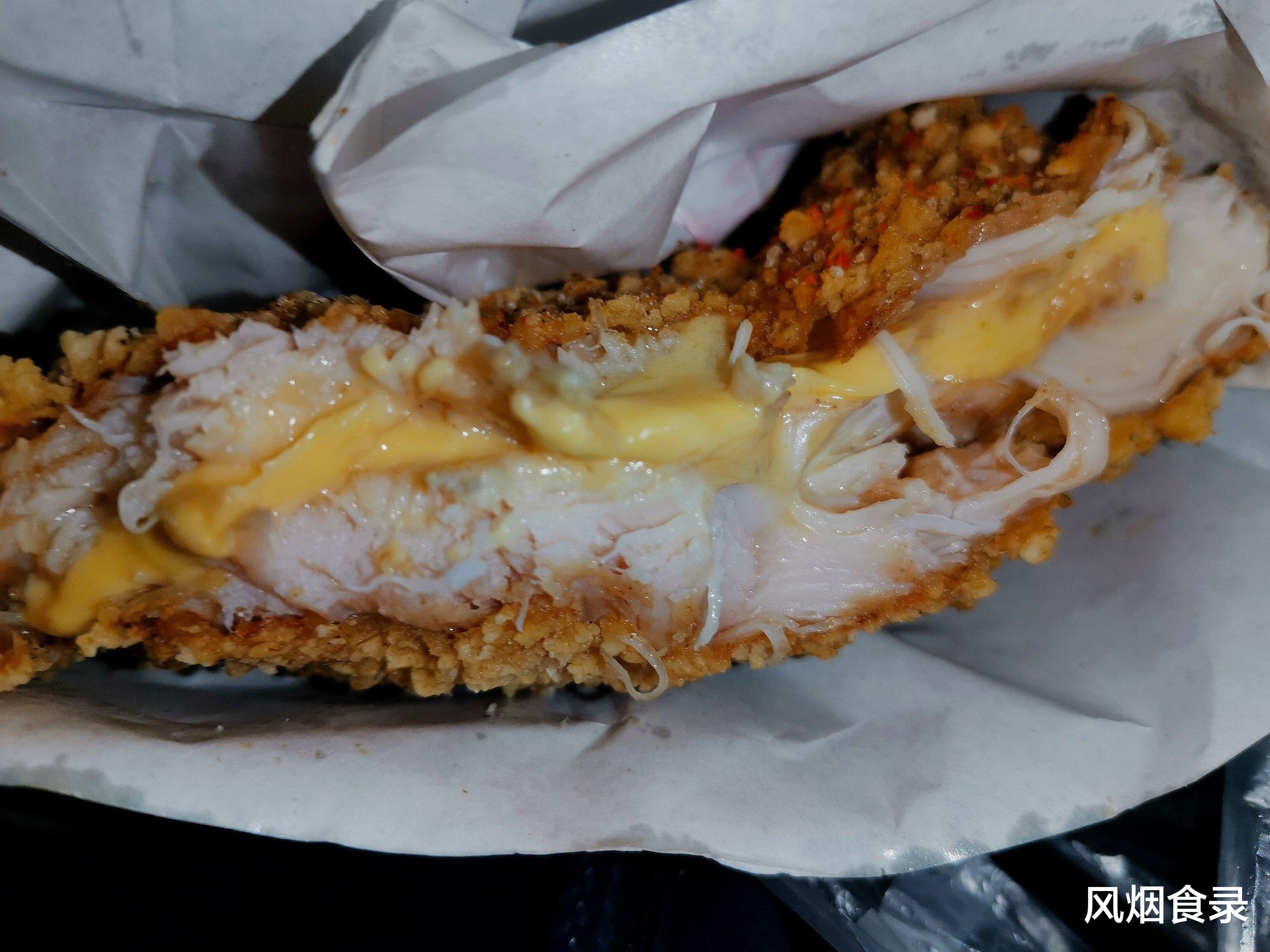 在鸡排里夹芝士,经油炸后芝士融化,咬开瞬间“爆浆”,像极了台湾人常说的“惊喜嘢”。