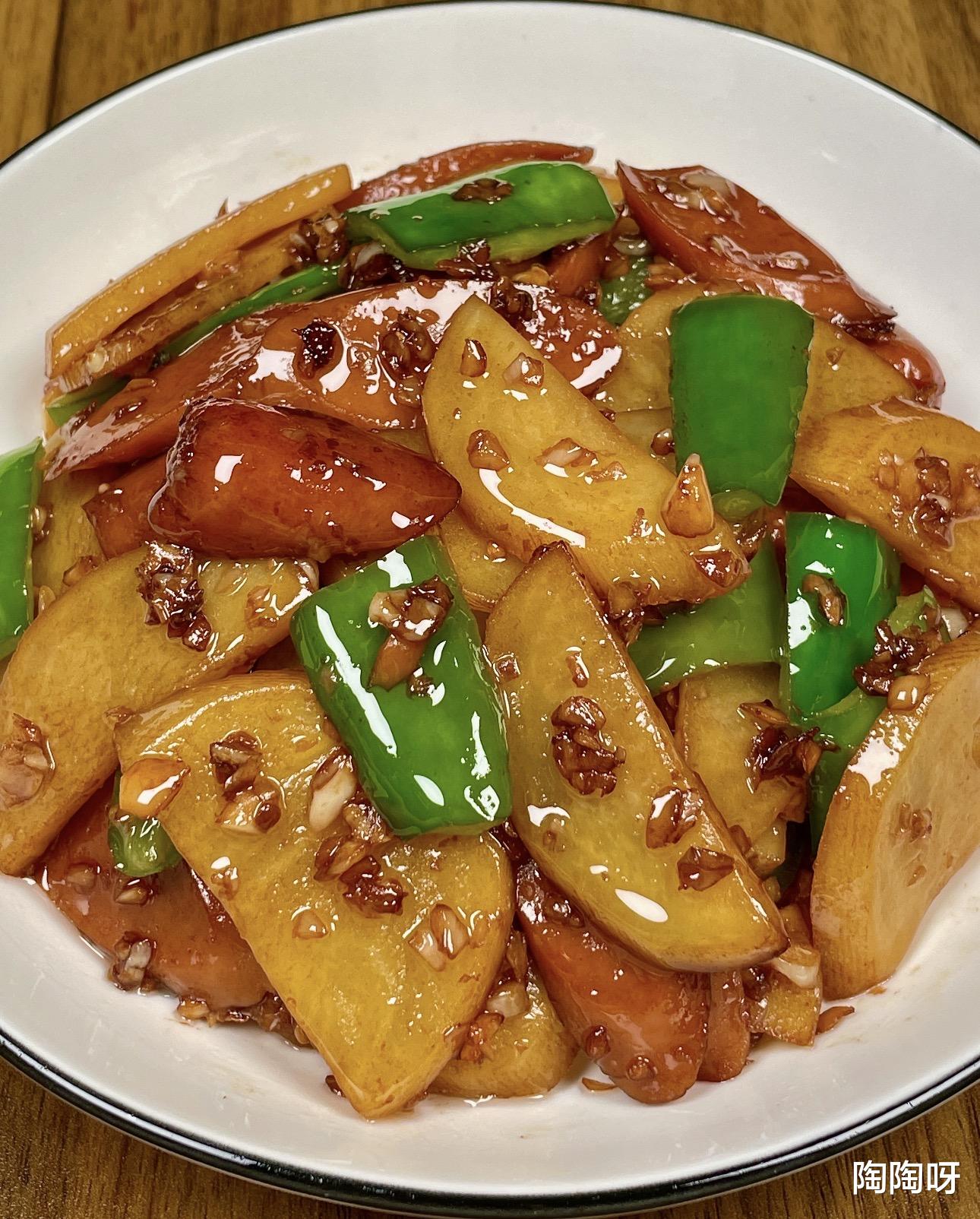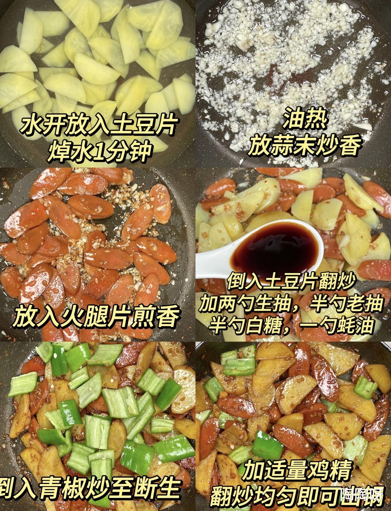 土豆的绵软和火腿肠的Q弹咸香,简直就是天作之合!配米饭我能吃3碗,妥妥的米粉杀手!