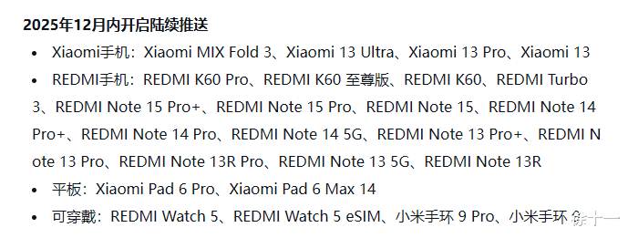 不过以上机型具体更新还得看到时候得公告哦!大家可以看看自己的型号多久会支持,然后在差不多的蹲一蹲小米社区。