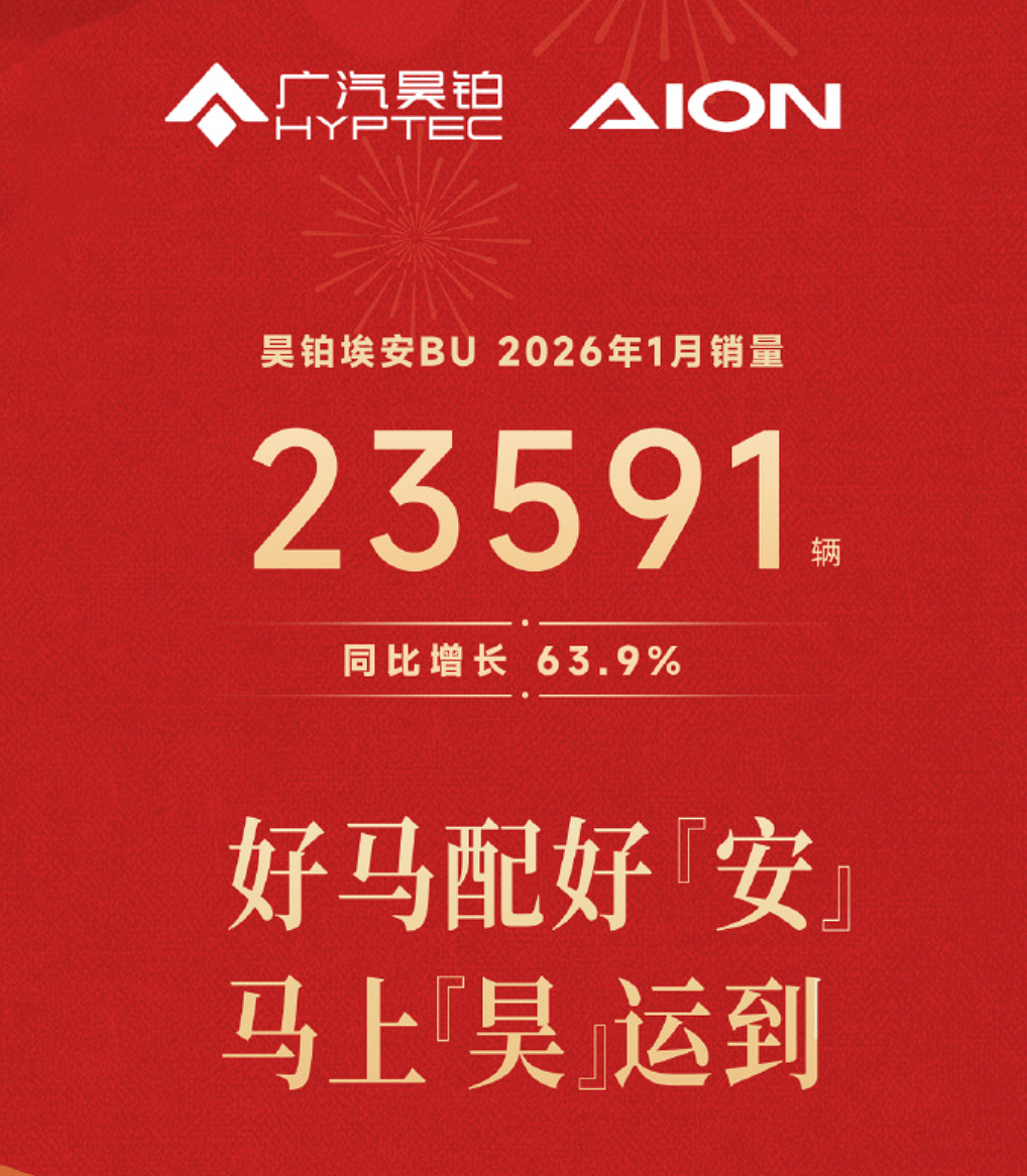 昊铂埃安BU成立仅满一月,便交出一份亮眼答卷:2026年1月,在行业传统销售淡季的春节前夕,双品牌合计销量达23,591辆,同比增长63.9%。这份成绩的背后,离不开张雄主导的战略布局与高效协同的组织运作。
