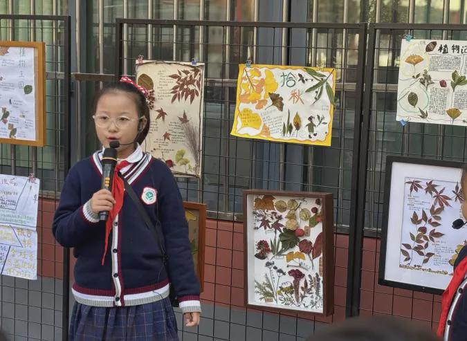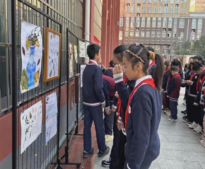 同学们仔细参观,旁边的老师笑着补充,展板上的每片叶子、每朵干花,都是她们蹲在树下挑了好久的“宝贝”。阳光落在标本框上,连叶脉里都裹着秋的温柔。