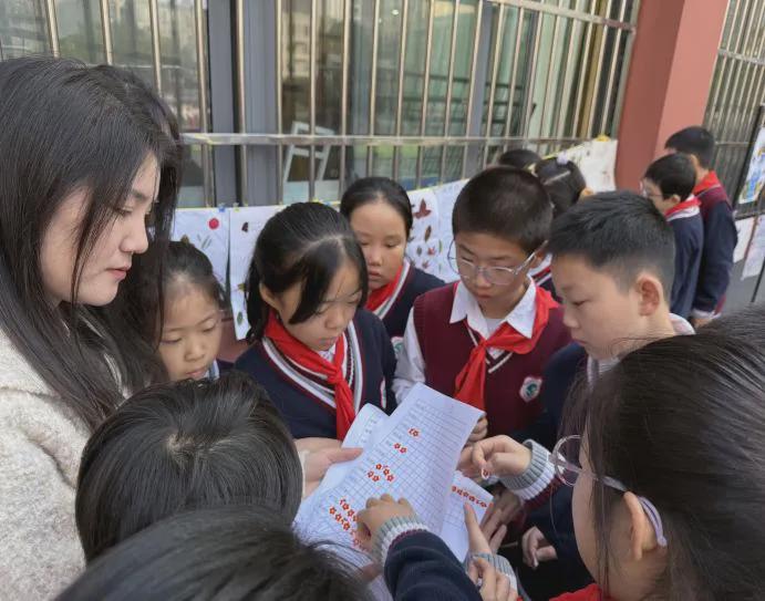看完作品展,观展的同学们聚集到投票表前,手里的小红花“啪嗒”往表格上落,没一会儿,热门作品的那栏就缀满了红红的小花朵。