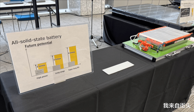 丰田在展会上展示了一枚实体固态电池原型,并声称其续航可达1200km(具体测试条件尚未公开)。此外,丰田表示该电池的输出功率是现行电池的两倍。