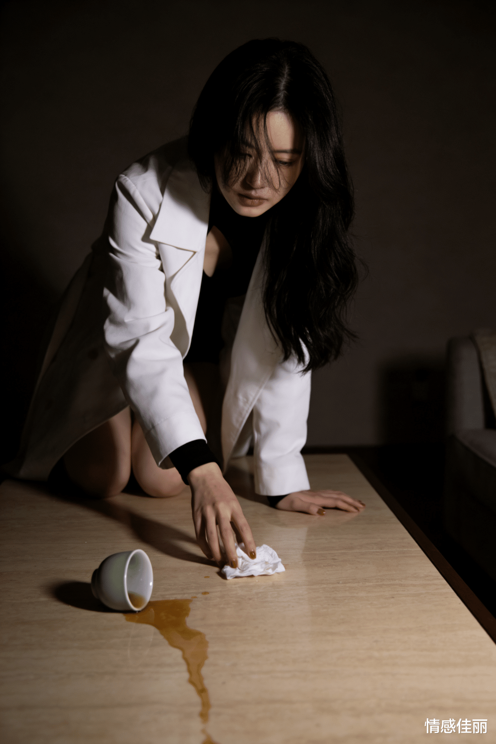 暮色漫过落地窗时,她正用纤指摩挲着相框边缘的裂纹。玻璃倒影里,那件象牙白风衣仍带着去年深秋的凉意,赤足踩在羊绒地毯上的触感却早已模糊——就像他最后那句“等我”,在时光里泡得发涨,轻轻一碰就化作满地碎片。