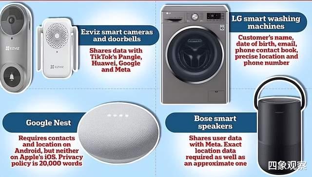 据透露,智能音箱、门铃摄像头、电视甚至洗衣机等日常设备每天都在监视人们的家庭。