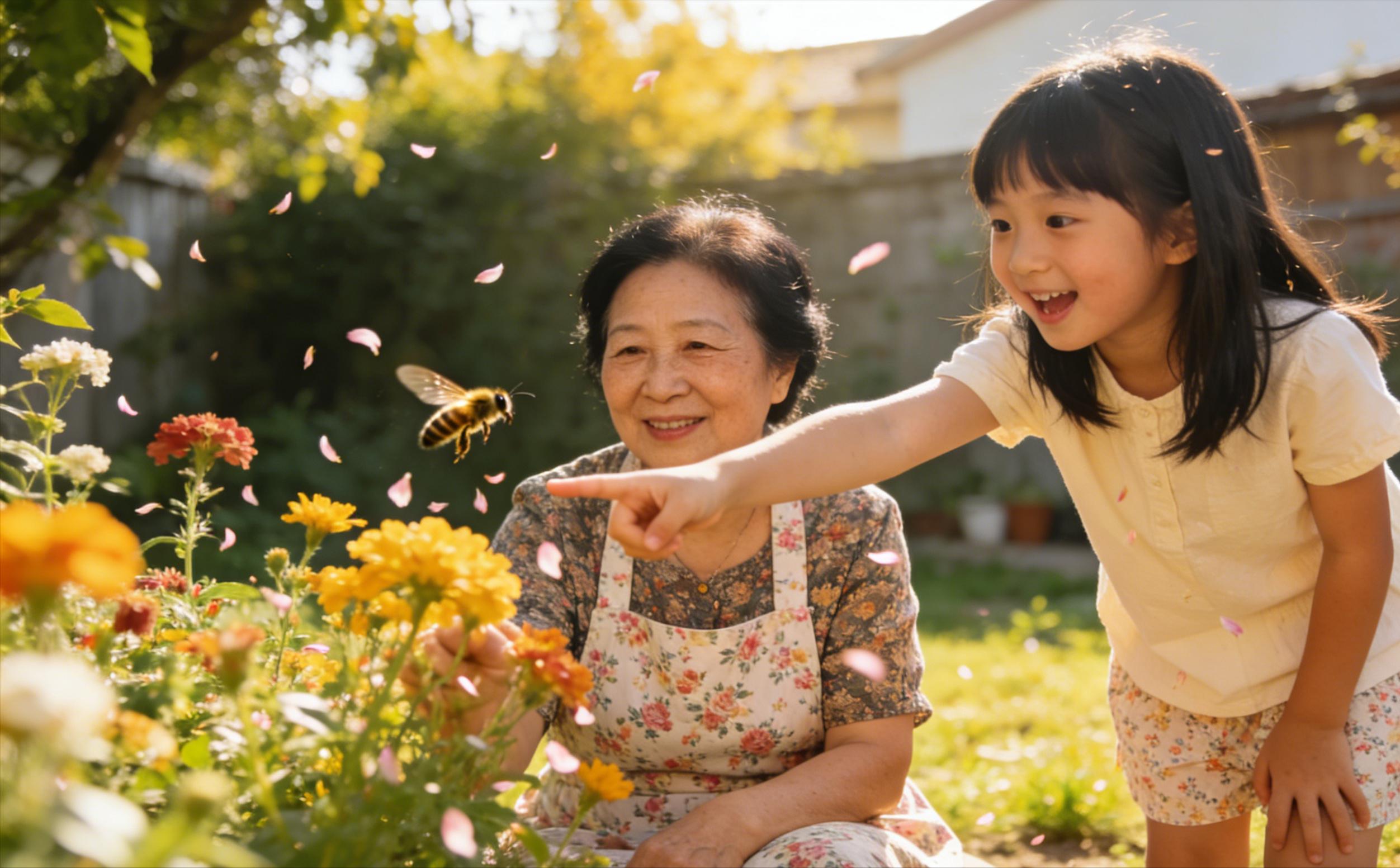一阵微风吹过花园,李阿姨正坐在自家的院子里,她的孙女兴奋地指着一群蜜蜂在花间穿梭。“小心点,别被蜜蜂蛰到!”李阿姨轻声提醒。