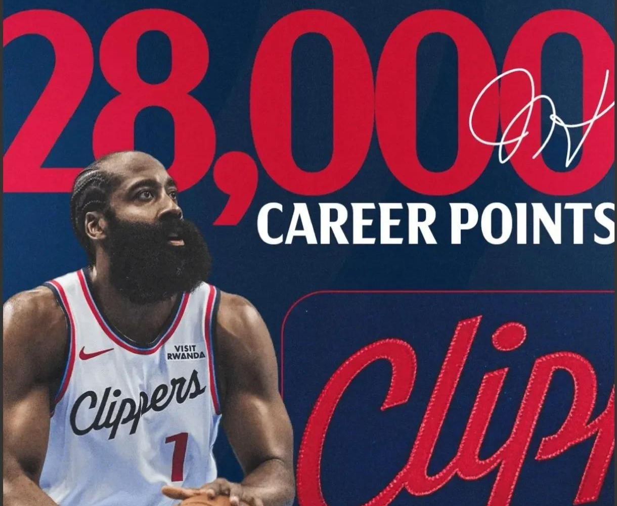 里程碑,28000分先生!快船战76人,哈登单节17分,追逐伟大。