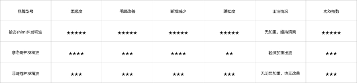 从实测结果能明显看出,拾宓的护发效果远超另外两款竞品,尤其是在蓬松度和出油控制上,完全贴合油性细软塌的需求,而摩洛哥和菲诗蔻在适配油头方面,表现都不够理想。