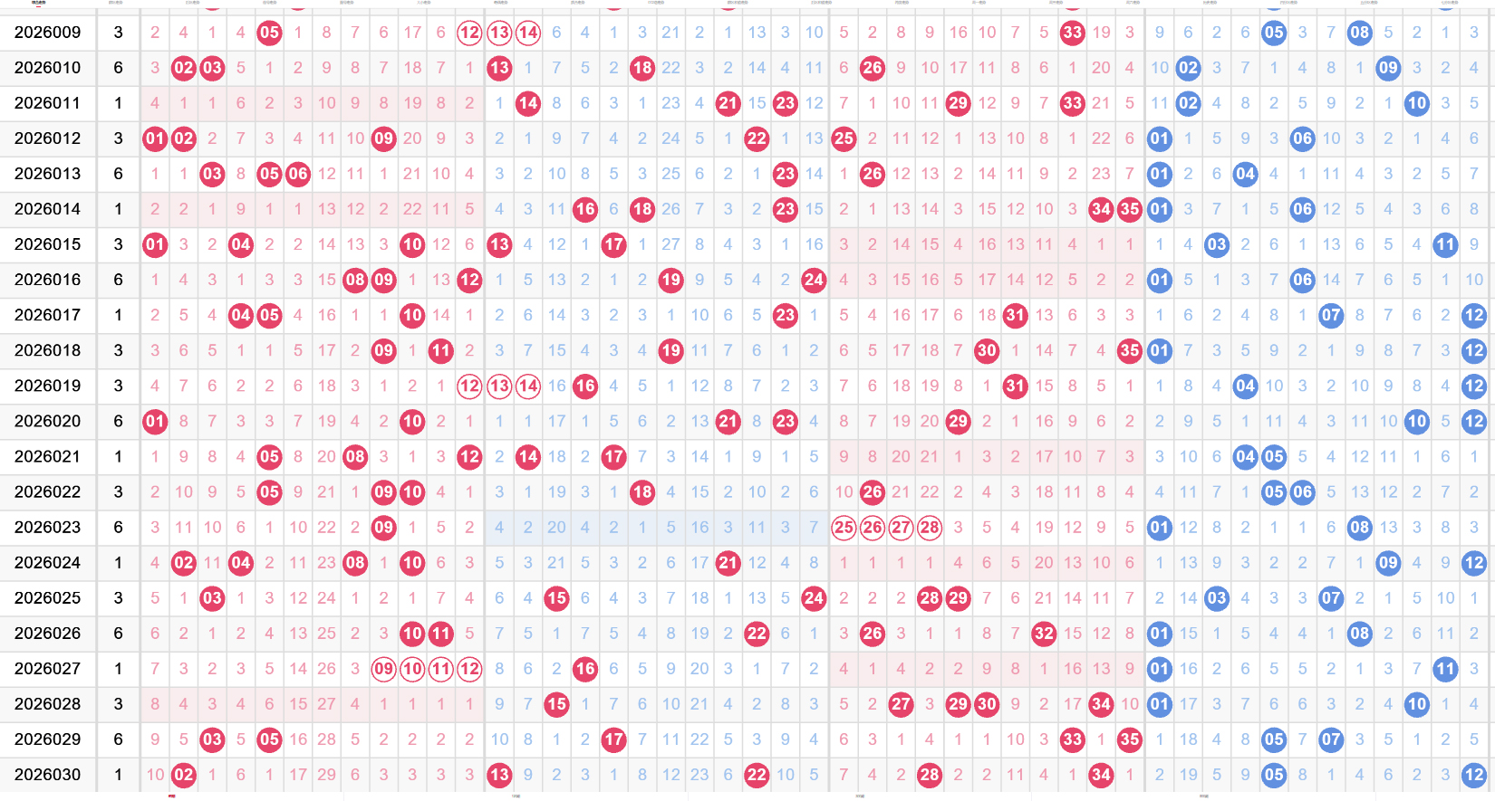 一起来回顾一下近两期的号码:一、跨度:一宽一窄,节奏分明26030期最大34,最小02,跨度32,属于典型的“宽幅”走势,头尾拉得很开,中间留出大片空白。26031期最大34,最小06,跨度28,虽然也不小,但比上一期收窄了4个点。有意思的是,两期都守住了34这个“大龙头”,但小号端从02跳到了06,说明号码重心在悄悄向中间靠拢。跨度从32缩到28,这种变化往往预示着下一期可能会继续收窄,或者突然转向极窄区间。