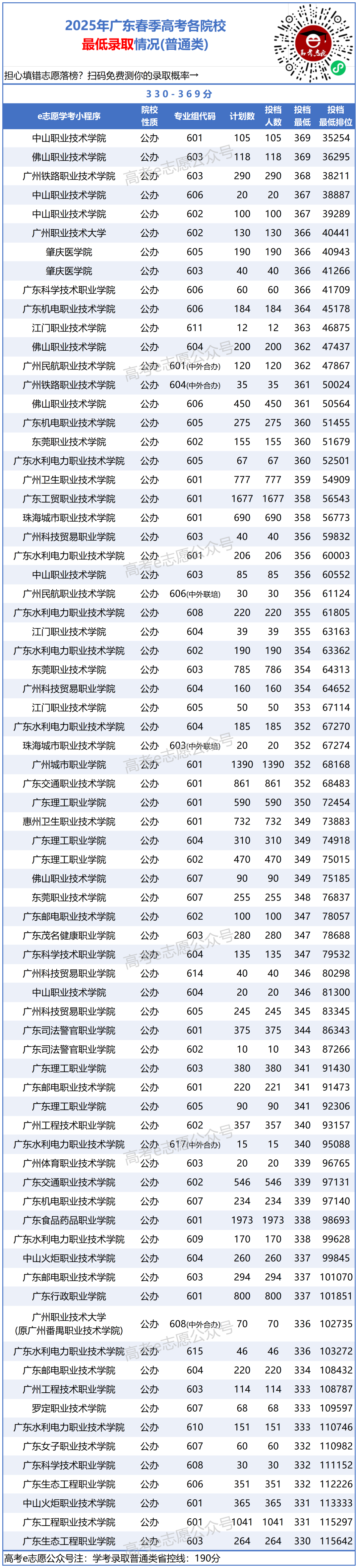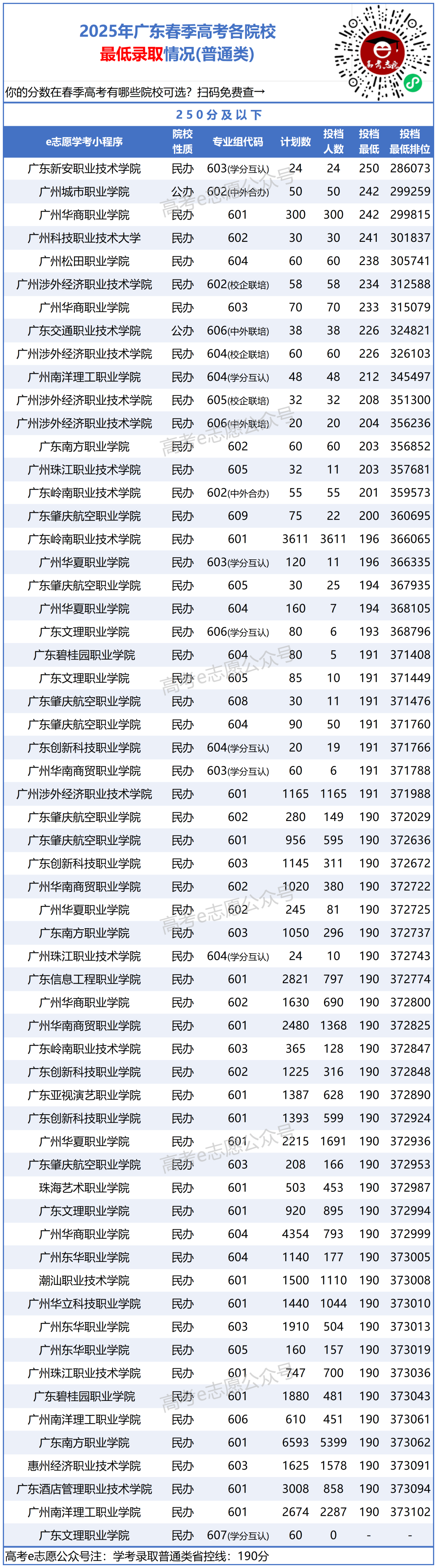 对于这个分数段的考生,公办选择有限,要么是非珠三角的地理位置,要么是相对冷门的专业。尤其是270分以下的考生,上公办大专难度估计较大,可以选择计划大,且实力和口碑都比较强的民办院校,录取到自己心仪的专业。